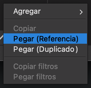 Si eliges la opción de pegar con referencia, creará una referencia con el mismo nombre, podrás comprobar que si renombras la nueva referencia, el cambio de nombre se aplica también a la antigua referencia. La opción de pegar con duplicado hace una copia del objeto, y la coloca con un nombre distinto.
